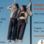 - Stages à venirStage aériens adultes et ados le 6 avril 2025 Stage aérien : Trapèze / cerceau (tous niveaux) et tissu / corde lisse (débutant.es et initié.es). Ouvert aux adultes et ados à partir de 14 ans. Dans ce stage multi aérien, vous aurez la possibilité de tester tous les agrès ou de vous concentrer sur celui de votre choix si vous le préférez.Après… Lire la suite : Stages à venir
